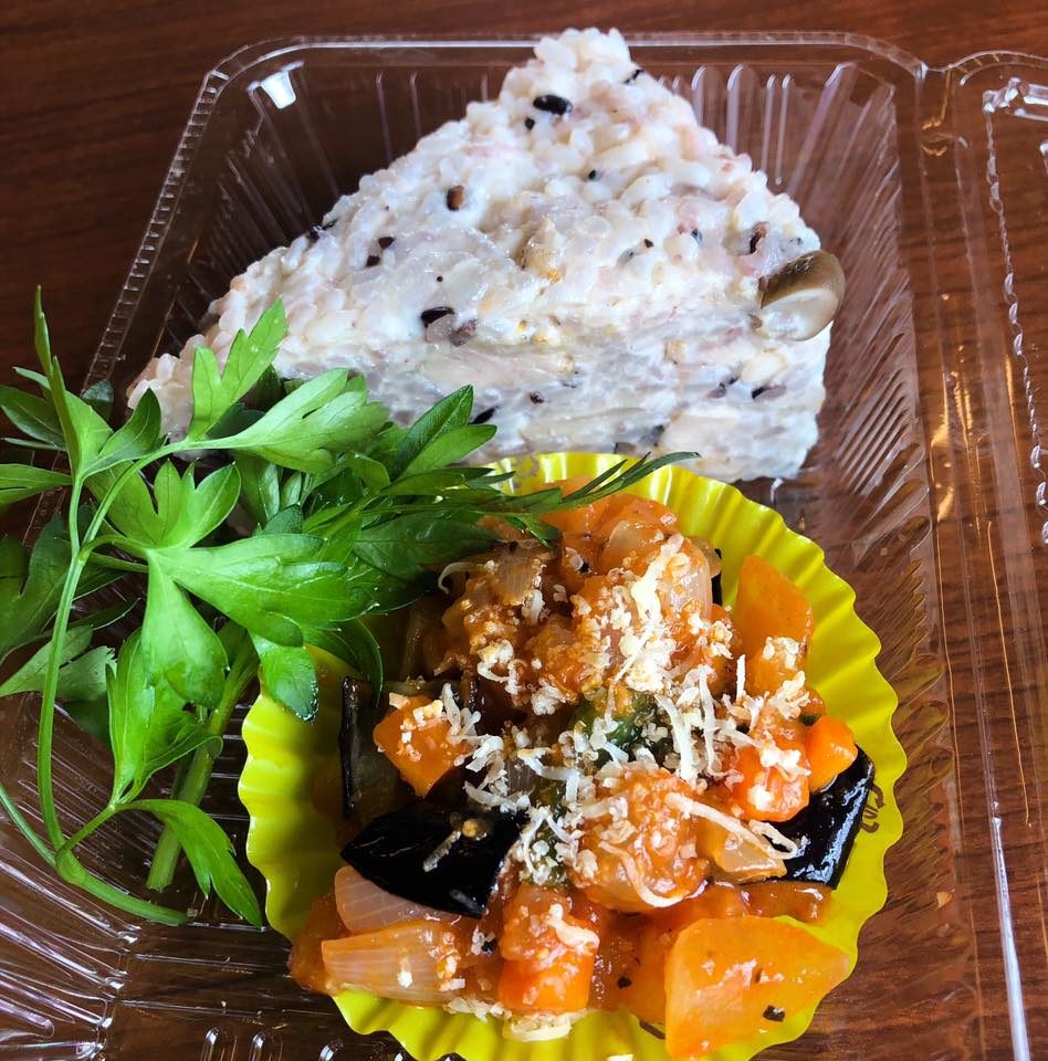 本日のオススメ! テイクアウトメニューは✨✨ 『五穀米とチキンのリゾット、夏野菜のラタトゥーユ』にらなります💁♂️ 容器を移し替えて、600wの電子レンジで1分30秒温めて下さい。 ラタトゥーユはそのままでもいいですし、上に乗せて一緒に食べても美味しいですよ😊